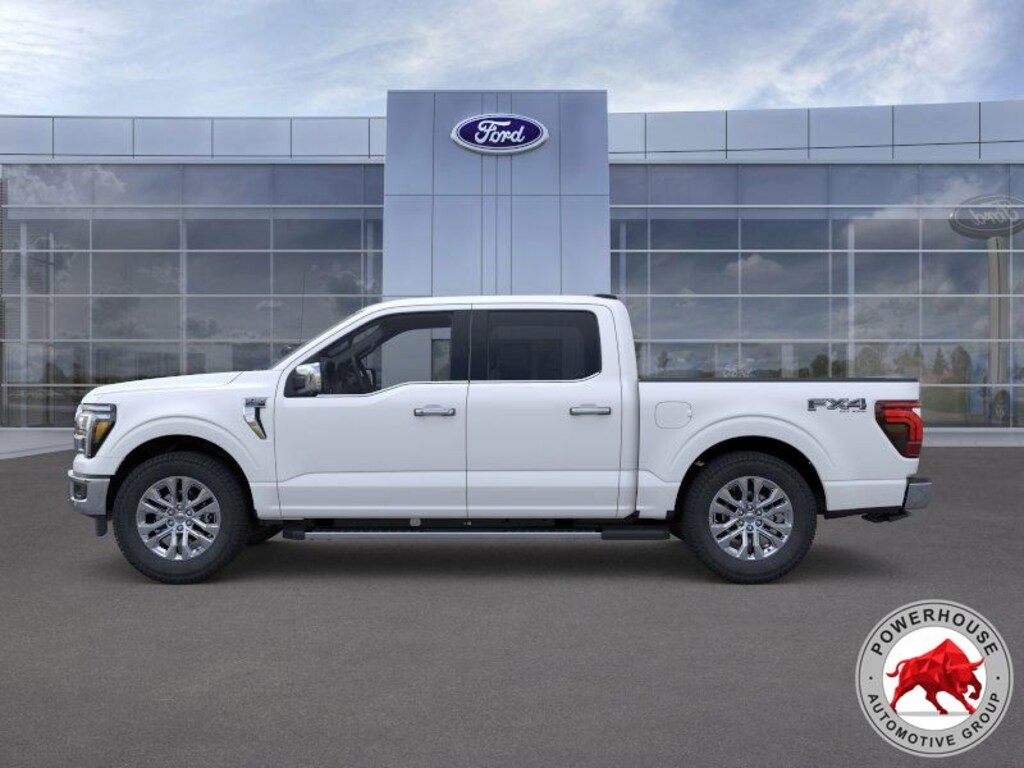 Complementing its exceptional capabilities, the F-150 Lariat's striking White exterior and premium interior appointments create a bold, sophisticated presence that is sure to turn heads wherever you go. The available Star White Metallic Tri-Coat paint finish further enhances the vehicle's stunning appearance, while the chrome-like PVD wheels lend an elegant touch to the rugged design.